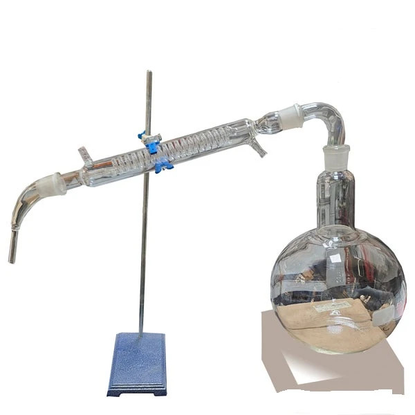 ست تقطیر شیشهای آزمایشگاهی معمولاً شامل تجهیزات مختلفی است که برای فرآیند تقطیر مایعات در آزمایشگاهها به کار میرود. این ست شامل قطعاتی است که برای انجام فرآیند تقطیر مورد نیاز هستند و معمولاً از جنس شیشه مقاوم به حرارت ساخته میشوند تا از آسیب دیدن در اثر گرما یا مواد شیمیایی جلوگیری شود.