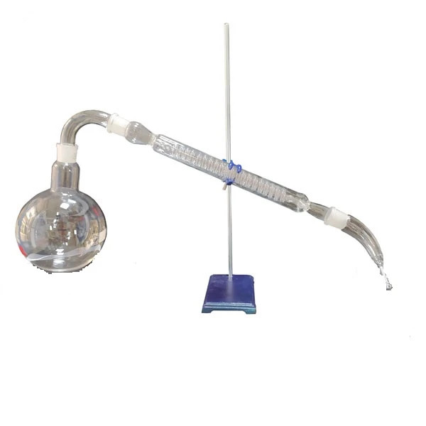کولر (Condenser): لولهای شیشهای که بخارهای داغ وارد آن شده و به مایع تبدیل میشود. معمولاً به صورت دو لایه است که لایه خارجی برای عبور آب سرد و لایه داخلی برای انتقال بخار به مایع استفاده میشود.