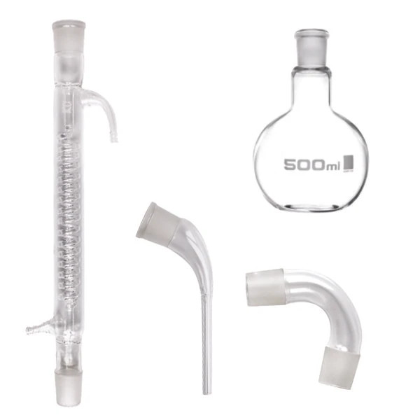 شامل 4 قطعه : بالن تقطیر - زانویی - کندانسور - قطره گیر