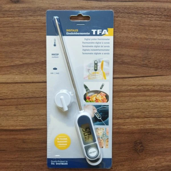 یک ترمومتر خوب با دقت 0.1 جهت استفاده در مایعات و گوشت و خاک و اجسام سفت .