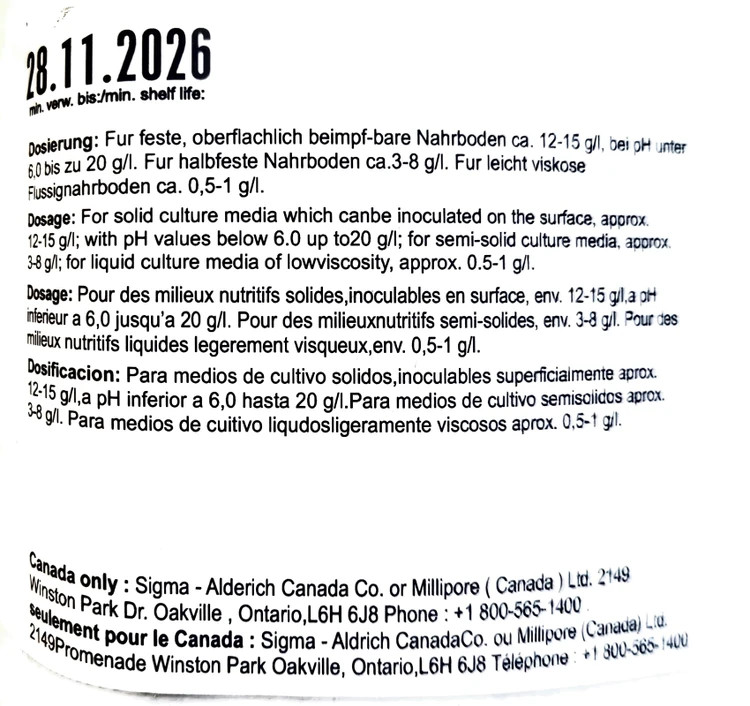 مشخصات فنی Agar‑Agar Merck (کد 101614)
