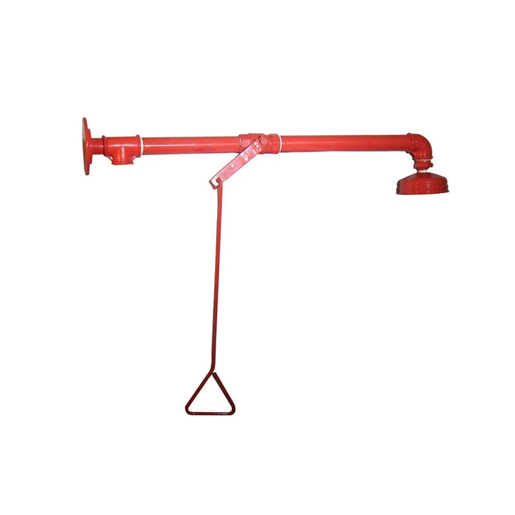 دوش دیواری اضطراری ساخته شده از جنس فولاد ضد زنگ و با پوشش رنگ الکترواستاتیک قرمز بر روی دیوار نصب میشود و مجهز به شیر ضد زنگ با قابلیت باز و بسته شدن سریع کمتر از یک ثانیه همراه با اهرم دستی می باشد.